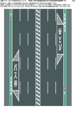 | 21-624 6車線速度制限標示付直線道路「バス優先レーンつき」 1枚 255円+税 長さ約25.5cm、幅約17cmの直線が1本あります。必要な箇所だけ切って貼り合せながら使用してください。 |